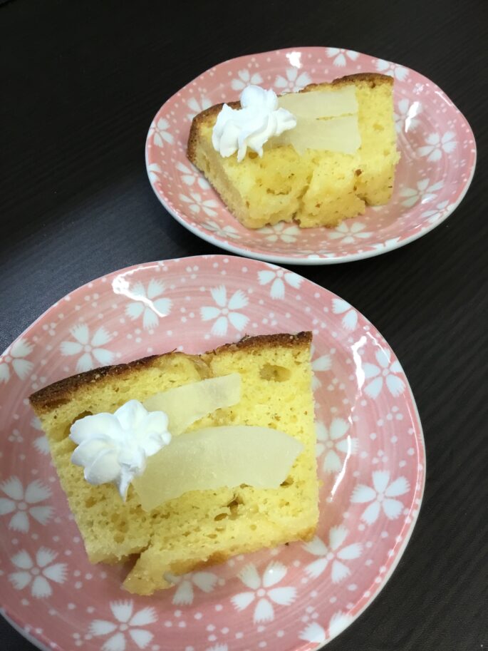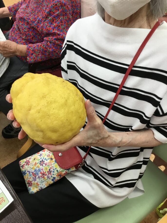 2024.06.05 ケアーサロンかるなおかざき 今日のおやつ ご利用者のA様より、果物のブンタンを頂きました。 家のお庭で出来たそうです。 ずっしりと重く、大きくてびっくり!! あまりにも立派でオブジェとして飾っておこうかと思ったのですが、、、 やっぱり食べてみたいと、たまらず少し味見をしてみると、めちゃくちゃ酸っぱい!!! 何とかできないかな~と調理スタッフが考えました。 そして出来上がったのが「ブンタンのパウンドケーキ」です。 柑橘系のさっぱりとしたお味でとても美味しいと大好評でした。 ごちそうさまでした~♬ 前へ 次へ
