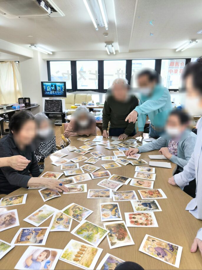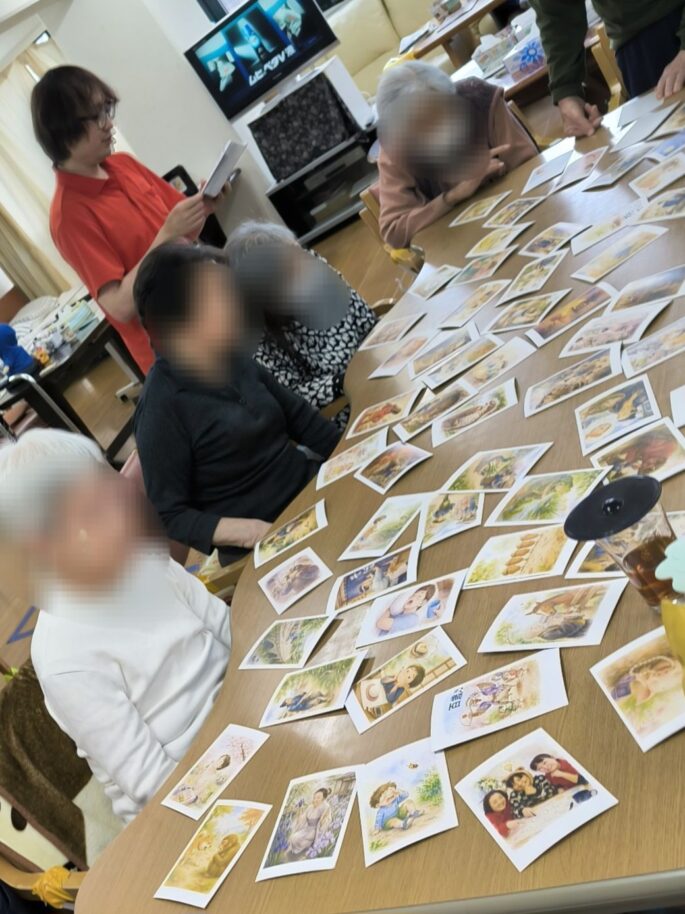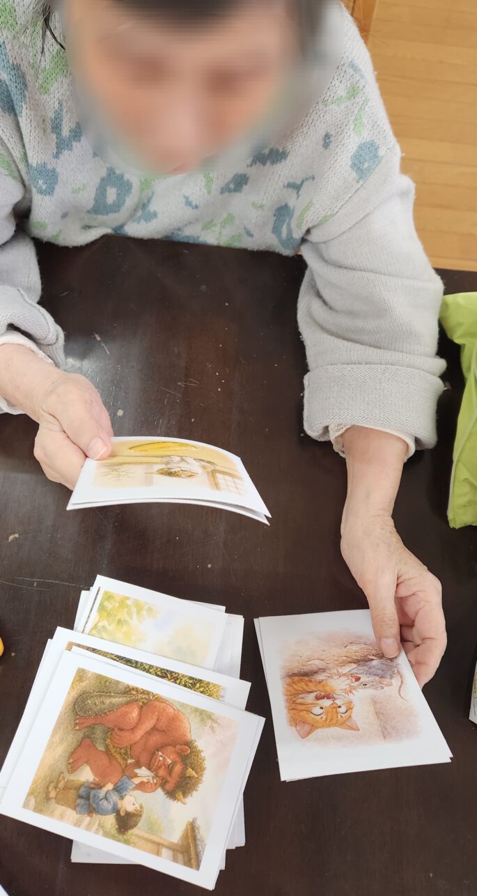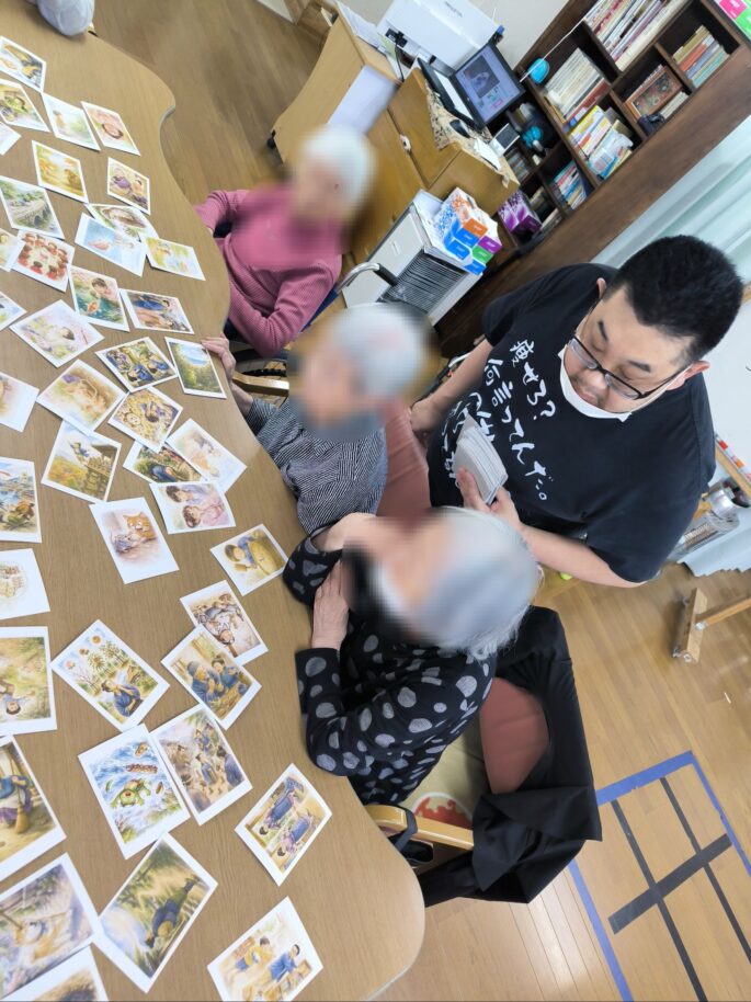 完成したカルタには、時折スタッフの顔もこっそり登場し、思わず笑いが起こる場面もありました。遊びながら自然と笑顔があふれ、にぎやかで楽しいレクリエーションとなりました。