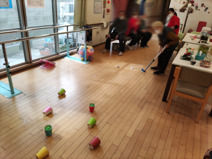 2024.02.14 カルナ西陣デイサービス ポートボールゲーム 今週のレクより。 紙コップを使ったポートボールゲーム。 普段座ってのレクリエーションが多いですが、足の運動も兼ねて今日は立って行います。 勝負となると真剣そのもの! カップからボールがこぼれた時には 「あ〜〜。。。」と残念そうな声 カップにボールが入ると 「うわーーー!!」と拍手喝采。 賑やかなデイルームでした。 前へ 次へ