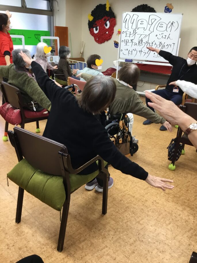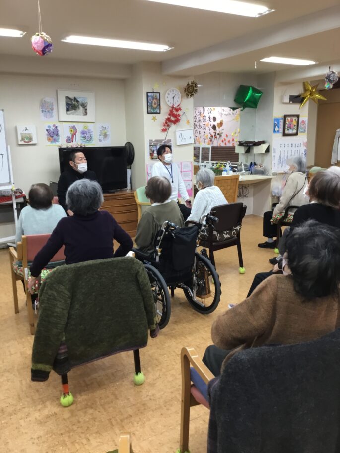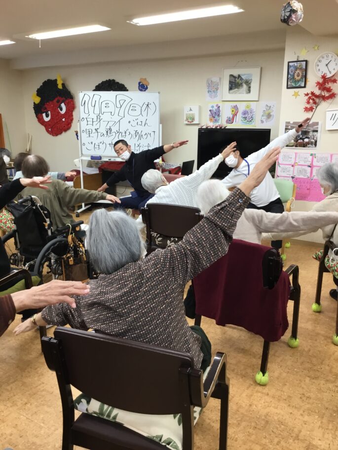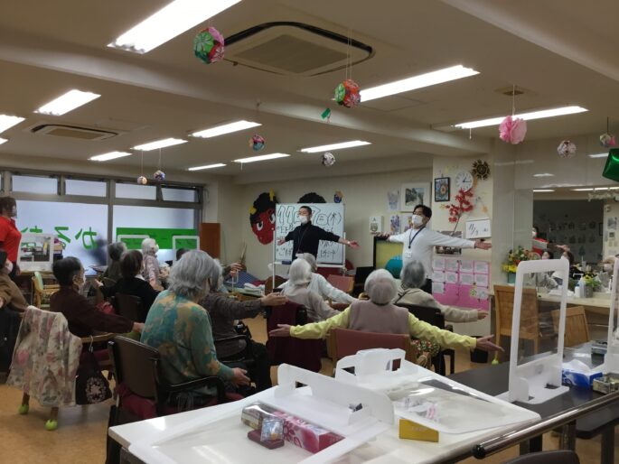 昨日、ゆずの手訪問マッサージ院さんより、国家資格を持ったマッサージの先生が来てくださり、皆さまに体操を教えてくれました。
