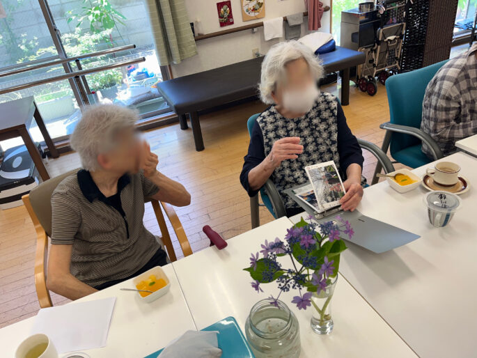 2024.06.15 カルナ西陣デイサービス 暑さの中に涼しさを 今週は本当に暑かったですね。 昨日は35度を超える猛暑日となりました。 そんな日はおやつに冷たいゼリーを… ゼリーの上にカルナ庭園で育てているミントを添えて。 みなさま喜んでくださっていました。 ミントの香りが好きなご利用者様は庭園のミントをお持ち帰り‼︎ とてもイキイキしたミントです。 負けじとみなさまも仲良く和気あいあい♪ 暑さに負けず元気に楽しく過ごされていました。 今日もありがとうございます。 前へ 次へ